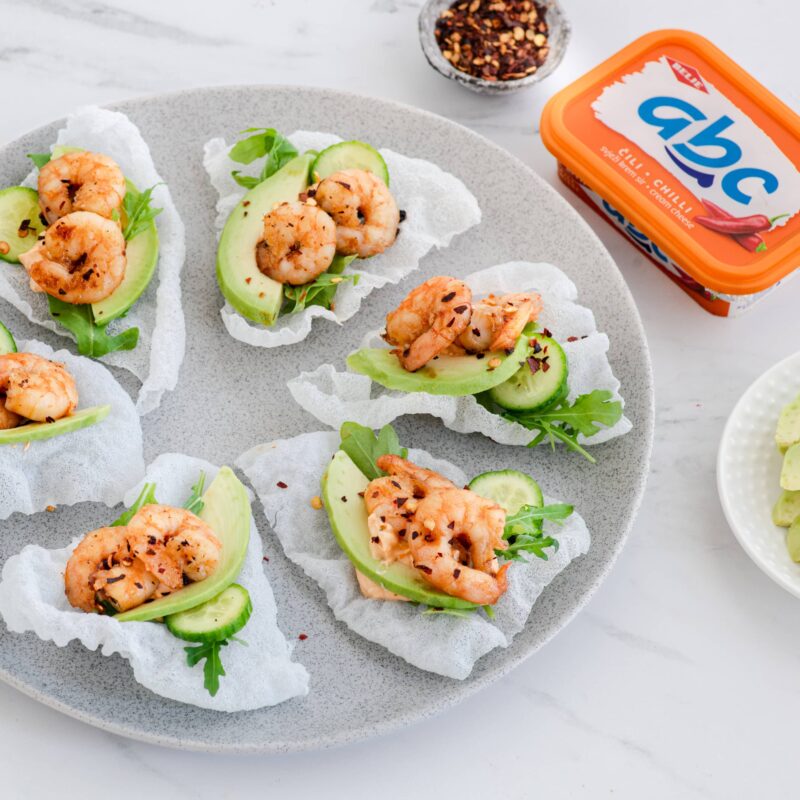 4. Premažite s ABC Tuna sirnim namazom i postavite po krišku dimljenog lososa.